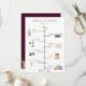 Des éléments colorés rustiques de jour de mariage aquarelle, programme chronologique. La carte comprend l'église, la caméra, la bouteille avec verre, la fixation d'assiette, des notes de musique, gâteau, bouquet, et voiture rétro. Le dos de la carte est muni d'une bordure d'aquarelle fleurie et feuillage avec la couleur arrière - plan violet du vin de prune. Conçu pour se coordonner avec notre collection florale de Blush et de Plum.