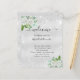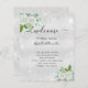 Un faux arrière - plan métallique à l'aspect argenté, décoré d'un blanc floral blanc couleur eau, de la végétation d'eucalyptus et de la poussière de parties scintillant faux argent. Personnalisez et ajoutez vos noms et votre calendrier de mariage.