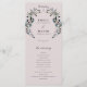 Ce programme de mariage élégant et chic présente des fleurs d'aquarelle peintes dans les tons bleu et rose. Personnalisez-le avec votre propre texte en utilisant les modèles fournis. La couleur arrière - plan est définie sur mauve, et coordonne avec notre collection de mariages "Garden Crest". N'hésitez pas à choisir une nouvelle couleur de remplissage afin de la mettre en correspondance avec votre thème mariage. Cliquez sur le bouton "personnaliser" pour faire de la place pour plus ou moins de texte ou pour augmenter/diminuer la taille des polices selon les besoins.