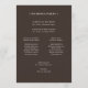 These elegant, simple wedding welcome programs feature an ivory cream border and a dark, espresso brown background. There is a mix of classic text and modern calligraphy for a classy and minimalist design perfect for your timeless, formal or rustic country western wedding.