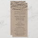 Simple mais élégant, les lampes à cordes de la collection rustique Kraft mariage est un design époustouflant avec de belles lumières à cordes blanches suspendues sur un arrière - plan à effet Kraft, qui est parfait pour toute célébration mariage rustique. Ces programmes peuvent être personnalisés pour votre occasion spéciale et rendraient la commande parfaite de service pour votre mariage, douche nuptiale, fête de fiançailles, fête d'anniversaire et bien d'autres occasions spéciales. Ajoutez votre libellé personnalisé à cette conception à l'aide des cases "Modifier ce modèle de conception" situées à droite de l'élément, ou cliquez sur le bouton bleu "Customiser" pour arranger le texte, modifier les polices et les couleurs et ajouter des informations ou des images supplémentaires à cette conception. AFFICHER LES ÉLÉMENTS CORRESPONDANTS POUR CETTE COLLECTION