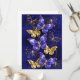 Composition des luxueux papillons saphir et bijoux en or sur arrière - plan bleu texturé.