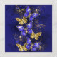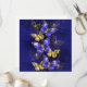 Composition des luxueux papillons saphir et bijoux en or sur arrière - plan bleu texturé.