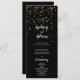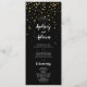Ce confetti d'or | programme de mariage noir est parfait pour un mariage simple et élégant. Le design chic et fantaisiste présente des confettis de parties scintillant en faux or et une calligraphie minimaliste sur le noir avec une touche boho moderne.