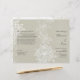 Des fleurs graphiques en blanc contre un taupe doux font une belle déclaration sur ce programme de mariage flyer. Des fleurs similaires sont répétées comme des filigranes au verso. Un regard sentimental pour une journée spéciale. Disponible en couleurs alternatives avec des produits correspondants.