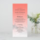 Élégant programme de mariage de destination avec un palmier tropical design sur un arrière - plan de corail couché de soleil avec un script élégant et la typographie moderne. Le corail brillant s'évanouit sur un arrière - plan blanc. Ajoutez simplement les détails de votre mariage à cet élégant programme de mariage tropical de plage. Conçu exclusivement pour vous par Happy Dolphin studio.