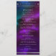 Cosmic Purple Turquoise Sun Moon Stars Wedding Program présente soleil argenté, lune et étoiles avec un cadre en argent sur un arrière - plan céleste avec votre ordre de cérémonie sur le devant et la fête de mariage et vous remercier à l'inverse en écriture blanche moderne. Personnalisez en modifiant le texte dans les zones de texte fournies. Conçu pour vous par Evco Studio www.zazzle.com/store/evcostudio