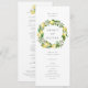 Ajoutez une touche fraîche et élégante à votre cérémonie avec cette carte de programme de mariage personnalisable avec une belle couronne d'aquarelle de citrons, fleurs douces et verdure luxuriante. Conçue pour guider vos invités tout au long de la journée, cette carte de programme comprend de l'espace pour personnaliser vos détails de mariage tels que l'ordre de cérémonie, les noms et les notes spéciales. L'art floral et citron crée une esthétique naturelle et joyeuse, idéale pour les mariages de jardin, les célébrations en plein air ou les événements d'été. La douce aquarelle allie charme rustique et élégance moderne, donnant le ton d'une occasion joyeuse et chaleureuse. Associez-le à des pièces assorties de la collection pour créer un look cohésif que vos invités aimeront.