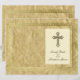Une couverture élégante pour accompagner un programme ou un menu, avec une croix chrétienne, une fine bordure en or, et du papier vintage écumé.