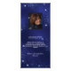 Programme de fête d'anniversaire. Personnalisez et ajoutez un nom, un âge et un programme. Un arrière - plan bleu marine, décoré avec de la poussière de parties scintillant imitation. La couleur bleue est inégale. Lettres de couleur blanche. Retour : ajoutez une photo de la fille d'anniversaire, des faits amusants et des noms.