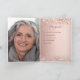 Un fond dégradé or avec faux brillants. Le nom est écrit avec un style de lettrage à la main de couleur rose or foncé moderne. Le numéro 75 est écrit avec une police de caractères de style ballon, script. Texte de bienvenue, photo, programme et une biographie au verso.