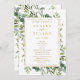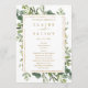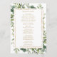 Ce programme de mariage est composé d'une aquarelle peinte de la verdure d'eucalyptus, de feuilles verts avec un cadre rectangulaire doré. Pour une personnalisation plus avancée de cette conception, cliquez sur le lien "Customiser plus loin". Des articles correspondants sont également disponibles.