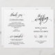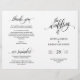Ceci est la carte de programme de cérémonie de mariage pliable, avec une écriture élégance de couleur noire.