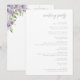 Guidez vos invités à travers votre journée spéciale avec ce programme de cérémonie de mariage élégant à l'aquarelle avec des lilas. Le devant présente de délicates fleurs de lilas violettes et une verdure de eucalyptus luxuriante dans le coin supérieur, avec un fond blanc propre et une typographie grise romantique listant l'ordre complet de la cérémonie - du prélude à la récession. Le dos affiche tout le cortège de mariage avec tous les rôles et les noms, entièrement personnalisable pour correspondre à votre événement. Un beau et fonctionnel souvenir que vos invités adoreront. Parfait pour les mariages de printemps et d'été avec une palette de couleurs botanique, jardin ou violet et vert. Coordonne parfaitement avec la suite complète de papeterie de mariage aux lilas.