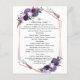 Planifiez votre journée dans le détail très dernier avec notre suite de mariage à cadre géométrique fleuri et violet. Customisez facilement avec vos détails en cliquant sur le bouton "Personnaliser". Le design est moderne avec des couleurs tendance avec un joli bouquet floral et un cadre géométrique or rose. Utilisez le bouton "Customiser" pour réorganiser et formater le style et le placement du texte. Peut facilement être réadapté pour d'autres événements spéciaux comme anniversaires, baby shower, fête d'anniversaire, nouveau bébé, baptême et plus encore.