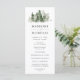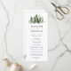 Élégant programme de mariage rustique avec vos noms et détails mariages avec une forêt de pins vert et sauge chasseur foncé. Personnalisez les programmes de mariage d'automne en ajoutant votre date et votre emplacement mariage, l'ordre des événements et la fête de mariage au dos. Conçu pour coordonner avec notre collection Rustic Pine Forest mariage.