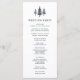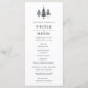 Notre programme hivernal et rustique de mariage chic comprend les détails de votre cérémonie surmonté d'un trio de pins en bleu profond et gris. Reverse side liste les membres de votre mariage avec des champs de texte facilement modifiables. Coordonnée avec notre collection de faire-part de mariage de forêt d'hiver. Utilisez les champs modèle pour ajouter les informations de cérémonie et de fête de mariage, puis cliquez sur "Customiser" pour repositionner les éléments si nécessaire. Besoin d'aide ? Contactez-moi via le lien "Demandez à ce concepteur" sur cette page.