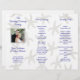 Programme de mariage photo pour se plier en trois. Accordéon avec motif étoilé arrière - plan et texte bleu indigo. Customisez en trois sections avec la photo du couple sur le panneau avant. Le dos de ce document n'aura pas de motif et sera blanc solide.