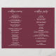 Il s'agit de la carte pliable du programme de cérémonie mariage, en écriture élégante sur le thème de la couleur Bourgogne. Il est conçu avec un accent de défilement qui peut être personnalisé avec du texte personnalisé/personnalisé pour votre fête de mariage, les détails de cérémonie, des notes commémoratives et un message de remerciement. ** Note : ces programmes de papier poids texte arrivent à plat et nécessitent un pliage pour être assemblés.