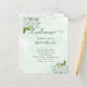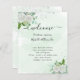Un arrière - plan vert aquarellé, décoré de fleurs blanches, de verdure d'eucalyptus et de poussière de parties scintillant en faux argent. Personnalisez et ajoutez vos noms et votre calendrier de mariage.