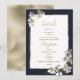 Cette superbe conception d'invitation de mariage présente de magnifiques invitations de Programme de détails de mariage florales tropicales élégantes à l'aquarelle blanche, bleu marine et or qui sont parfaites pour toute cérémonie classe et sophistiquée. Cette florale tropicale élégante est parfaite pour le couple luxueux et stylé. Personnalisez ce design avec votre message et vos informations personnalisées. Tous les modèles sont imprimés.