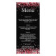 Programme de fête d'anniversaire et carte de menu. Personnalisez et ajoutez un nom, un âge, une date et le menu. Un arrière - plan noir. Décoré de confettis rouges, texte blanc.