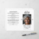 Célébration de la vie abordable avec des programmes bifold offrant une option digne et économique pour les services commémoratifs, grâce à une mise en page noire et blanche épurée. Ce modèle de programme de funérailles comprend une grande photo de devant avec une typographie élégante serif et script entièrement modifiable sur un fond blanc minimaliste. À l'intérieur, la mise en page est pensée pour inclure un ordre de service suggéré et une section de nécrologie, et le dos dispose d'un espace pour les remerciements ou tout autre texte, fournissant tout le contenu essentiel dans une seule carte pliée. Idéal pour les familles cherchant des solutions d'impression de funérailles économiques sans compromettre sur le style ou la personnalisation, ce design simple et de bon goût assure un hommage respectueux qui est à la fois économique et magnifiquement présenté.