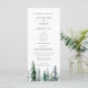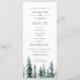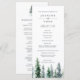 Notre programme de mariage rustique et hivernal chic présente les détails de votre cérémonie surmontés d'un seul pin aquarellé en vert chasseur, entouré de neige. Le verso liste les membres de votre cortège de mariage avec des champs de texte facilement modifiables. S'harmonise avec notre collection de faire-part de mariage Timber Grove pour des mariages rustiques élégants dans un cadre boisé ou forestier. Utilisez les champs du modèle pour ajouter les informations sur votre cérémonie et votre cortège, puis cliquez sur "Personnaliser" pour repositionner les éléments si nécessaire.