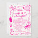 Préparez-vous à échanger les plumes contre un voile ! Célébrez la future mariée dans le véritable esprit de Las Vegas avec cette invitation de l'enterrement de vie de jeune fille "Cette épouse est une showgirl". Avec une illustration chic et rétro d'une showgirl dans un verre à martini, des boules disco et des nœuds fantaisistes, ce design capture le glamour et l'éclat d'une soirée cabaret classique. Cette invitation recto-verso est aussi fonctionnelle que stylée. Le recto présente tous les détails de votre événement avec une typographie amusante et script, tandis que le verso comprend un itinéraire complet du week-end pour garder l'équipe "Je dis oui" organisée du vendredi "Arrivée et cocktails" au dimanche "Brunch d'adieu". Personnalisez facilement le texte à l'aide de l'outil de conception de Zazzle pour qu'il corresponde à vos