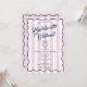 Un design coloré de boule à facettes disco dessinée à la main pour une soirée à thème. Un beau design parfait pour les fêtes d'enterrement de vie de jeune fille. Cette invitation à l'enterrement de vie de jeune fille comprend un programme pour le week-end au verso. Une invitation rétro moderne vintage rose et bleu rayée pour l'enterrement de vie de jeune fille.