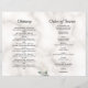 POUR HOMME OU FEMME ! Programme de photos funéraires commémoratives de l'Ordre du service. Il présente une végétation aquarelle, des éclaboussures de faux or, une photo sur le devant et une photo de famille sur le dos, sur un arrière - plan en marbre blanc. Utilisez l'outil Personnaliser pour ajouter vos informations et ajouter vos photos de manière simple. Pour les articles correspondants, s'il vous plaît, visitez ma collection de Merci de la fête de la vie.