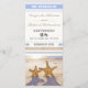 programme de mariage moderne à la plage mignon avec un couple d'étoiles de mer, sable et vagues.