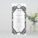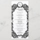 Ce programme de mariage moderne présente un design de cadre noir et blanc audacieux avec des fioritures élégantes en damas, créant un look raffiné et stylé. La couverture met en avant tous les détails de la cérémonie dans une mise en page épurée, tandis que le verso centre les noms des mariés à l'intérieur d'un cadre décoratif. Son élégance moderne associée au contraste intemporel noir et blanc en fait un choix parfait pour les mariages formels, garantissant à la fois sophistication et présentation mémorable.