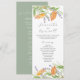 Ces programmes de mariage aquarelle présentent de jolies fleurs dans les tons orange et lavande. Utilisez les champs modèle pour ajouter votre commande de service. La carte revient à une couleur verte sage solide. Un choix boho chic mais botanique pour les mariages de jardin à thème fleur sauvage. Art unique et design de Victoria Grigaliunas de Do Tell A Belle.