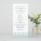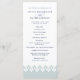 Notre programme de mariage élégant comprend vos détails de cérémonie en bleu marine riche, accentué d'une bordure géométrique d'inspiration marocaine le long du fond en bleu-vert pastel éthérée et blanc. Reverse side liste les membres de votre mariage avec des champs de texte facilement modifiables. Coordonnées avec notre collection de faire-part de mariage arabesques à Mist. Utilisez les champs modèle pour ajouter les informations de cérémonie et de fête de mariage, puis cliquez sur "Customiser" pour repositionner les éléments si nécessaire. Besoin d'aide ? Contactez-moi via le lien "Demandez à ce concepteur" sur cette page.
