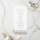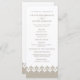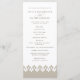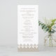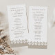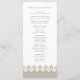 Notre programme de mariage élégant comprend les détails de votre cérémonie en bronzage sablonneux doux, accentué par une bordure géométrique d'inspiration marocaine le long du fond en lin beige. Reverse side liste les membres de votre mariage avec des champs de texte facilement modifiables. Coordonnée avec notre collection de faire-part de mariage arabesques en Champagne. Utilisez les champs modèle pour ajouter les informations de cérémonie et de fête de mariage, puis cliquez sur "Customiser" pour repositionner les éléments si nécessaire. Besoin d'aide ? Contactez-moi via le lien "Demandez à ce concepteur" sur cette page.