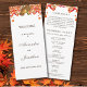 Célébrez votre jour spécial avec ce programme de mariage personnalisé "Fall in Love", conçu pour capturer la chaleur et la beauté d'un mariage automnal rustique. Avec une élégante composition botanique de feuilles chaudes orange, marron et jaune doré entremêlées de pommes de pin, de glands et de baies rouges rubis luxuriantes, ce design charmant se détache sur un fond blanc croquant pour un effet frais et saisonnier. Mélangeant le charme campagnard à une élégance raffinée, la mise en page met en valeur une typographie moderne mocha associée à une police de caractères calligraphiée élégante pour présenter les détails de votre cérémonie de mariage avec style et clarté. Parfait pour les couples qui prévoient une célébration automnale, ce programme ajoute un élément attentionné et sophistiqué à votre journée inoubliable.