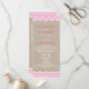 Des chevrons roses et blancs sur un fond illustré de toile de jute accentuent ce programme de mariage. Faites défiler la page pour voir le reste de la collection et si des articles supplémentaires sont nécessaires pour votre mariage, contactez-nous à prettyfancyinvites@gmail.com avec votre demande.