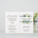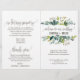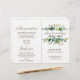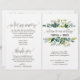 Ce programme de mariage aux feuillages est parfait pour un mariage rustique. Le design présente un cadre bohème composé de feuilles vertes et de botaniques de feuillage vert. Incluez le nom de la mariée et du marié, la date et le lieu du mariage, une courte citation, un message de remerciement, l'ordre du service, le cortège nuptial et un mémorial "en souvenir aimant".