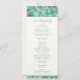 Programme de mariage avec motifs floraux, fleurs turquoises de couleur avec stries dorées. Beau programme de mariage artistique fleuri. Programme vintage de mariage aquarelle. Turquoise et Golden Collection.