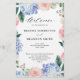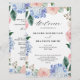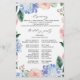 Programme de mariage moderne avec des hortensias aquarelles bleu clair / bleu poussiéreux avec des roses pastel rose, rose blush, pêche, blanches, pivoines, feuilles d'eucalyptus sauge, branches et feuillage. Nuances romantiques douces et feutrées, designs floraux aquarelles de printemps-été pour s'adapter à votre mariage thématique. Veuillez trouver plus de modèles et de variations correspondants dans ma boutique "blissweddingpaperie". Et n'hésitez pas à me contacter pour une personnalisation supplémentaire ou des articles assortis.