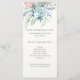 Ce programme de mariage branché présente des fleurs de pivoines bleues et roses, avec un arrière - plan fait pour ressembler à du papier d'aquarelle blanc. Nous avons utilisé l'art de LABFcreations.