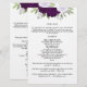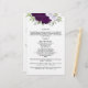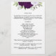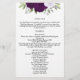 Ces encarts simples sont conçus comme des pages supplémentaires pour tous nos programmes de mariage bi-fold de 21,5x28 cm. Utilisez l'espace pour fournir plus de détails sur la cérémonie de mariage, pour des hymnes, des prières, ou pour donner à vos invités des informations sur la réception. Le design présente des roses peintes à la main à l'aquarelle dans des nuances de violet, de lavande et de prune, avec un simple bloc de texte de chaque côté que vous pouvez personnaliser pour répondre à vos besoins.