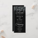 Annoncez le voyage enchanteur de l'amour avec notre programme sophistiqué de mariage des lumières de pendaison noir et blanc. Ce magnifique papier à lettres mariage est conçu de façon réfléchie pour guider vos invités dans la célébration de votre journée spéciale. Avec un mélange captivant d'une simple police de blocs et d'une gracieuse police de script, ce programme exhale une élégance moderne avec une touche de charme fantaisiste. L'arrière - plan noir orné de délicates lumières suspendues crée une ambiance magique, symbolisant l'amour et la lumière qui entourent votre union. Le texte blanc se démarque magnifiquement sur fond sombre, assurant que chaque détail de votre programme de mariage est élégamment présenté. Ce programme de mariage noir et blanc est un choix polyvalent, parfait pour ceux qui recherchent une palette de couleurs intemporelle ou les couples qui adorent les mariages rustiques, à thème champêtre ou le charme magique des lumières suspendues. Il capture magnifiquement l'essence de votre histoire d'amour, ajoutant une touche d'enchantement à chaque moment de votre célébration. Conçu avec soin et attention aux détails, notre programme de mariage Black and White Hanging Lights est le gardien parfait pour vos invités à chérir. Il les guide non seulement à travers les moments mémorables de votre journée spéciale, mais sert aussi de mémoire précieux de votre amour et de votre engagement. Profitez de la beauté de la simplicité et de la magie de l'amour avec cette superbe papeterie mariage moderne qui ouvre la voie à une célébration inoubliable de votre union. Faites en sorte que chaque instant compte et laissez l'amour briller brillamment pendant que vous partagez vos voeux et créez des souvenirs durables avec vos invités chéris.