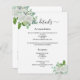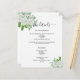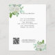 Un mariage moderne, élégant détails / programme / chronologie. Un arrière - plan blanc, décoré de fleurs blanches à l'eau et de végétation d'eucalyptus. Personnalisez et ajoutez vos noms et les détails du mariage. Lettres de couleur noire. Texte des deux côtés. Ajoutez l'URL de votre site Web mariage au code QR. 1 feuille = 1 programme imprimé de bord en bord.