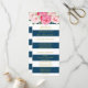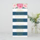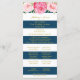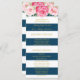 Programme de mariage personnalisé en bleu marine et rayures blanches motif avec fleurs d'aquarelle rose vintage. Customisez ces cartes de cérémonie avec votre propre texte.