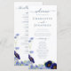 Le programme de mariage bohème chic comprend les détails de la cérémonie et le cortège de mariage avec des modèles faciles à personnaliser, parfaits pour une prairie printanière, un mariage dans un jardin d'été. De magnifiques fleurs sauvages et feuillages peints à la main à l'aquarelle dans des tons rose, bleu bleuet, bleu marine, violet et vert, idéaux pour un jour de printemps ou d'été du programme de mariage. La typographie moderne élégante en bleu marine complète l'art saisissant et fantaisiste peint à la main qui comprend des bleuets, des coquelicots, des cosmos, des myosotis et un feuillage délicat. Œuvre originale de l'artiste Catherine Sweetman