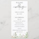 Programme de mariage botanique de fleurs sauvages à l'aquarelle élégant. Le programme comporte un accent de calligraphie mignonne "mariage" avec plusieurs lignes pour le texte personnalisé, y compris la cérémonie, l'ordre des événements, le cortège de mariage et le mot de remerciement. Conçu pour correspondre à notre collection botanique de fleurs sauvages élégantes.