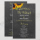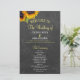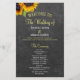 Modèle de programme de mariage rustique champêtre élégant et abordable pour cérémonie et fête de mariage, avec deux beaux tournesols orange jaune et une calligraphie chic faussement dorée et blanche sur fond gris foncé tableau noir.++++++++++++ Personnalisez-le avec vos détails ! +++++++++ Convient pour les mariages de jardin rustique campagne été ou automne arrière-cour extérieur.