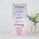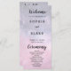 Présentant notre programme de mariage des rêves célestes, une représentation fascinante de l'amour sous le ciel étoilé. Ce programme enchanteur présente une palette captivante de rose pâle et de bleu acier, créant une toile de fond rêvée de ciel nocturne ornée de nuages clairsemés et d'étoiles chatoyantes. Il dégage une aura de mystique et d'émerveillement céleste, capturant l'essence de la romance et de l'enchantement. Sur la couverture, le texte est élégamment présenté en noir classique, avec les noms du couple, la date du mariage et l'emplacement avec une simplicité intemporelle. L'ordre de cérémonie soigneusement préparé est minutieusement détaillé, permettant à vos invités de suivre chaque moment de votre célébration en toute transparence. Ajoutant une touche de magie au design, les mots "Welcome", "Ceremony" et "Wedding Party" sont délicatement confectionnés dans une police de caractères décoratifs. Ces détails ornés infument le programme avec un sentiment d'émerveillement et de célébration, en contraste avec la police de caractères sous-jacente. Ce mélange harmonieux de styles saisit l'essence de la modernité et l'allure intemporelle, créant un programme accueillant et visuellement attrayant. Sur la couverture arrière, vos membres estimés de la fête de mariage sont célébrés, leurs rôles mis en évidence d'une manière qui complète le thème céleste. Chaque détail est minutieusement conçu, créant un programme de mariage cohésif et visuellement attrayant qui reflète votre style unique et votre histoire d'amour. Célébrez votre histoire d'amour avec notre programme de mariage des rêves célestes, un choix sophistiqué qui promet d'améliorer la beauté de votre cérémonie. Laissez le design enchanteur et l'attention méticuleuse au détail faire de votre célébration mariage une expérience inoubliable, laissant chacun captivé par l'élégance céleste et la romance de votre union.